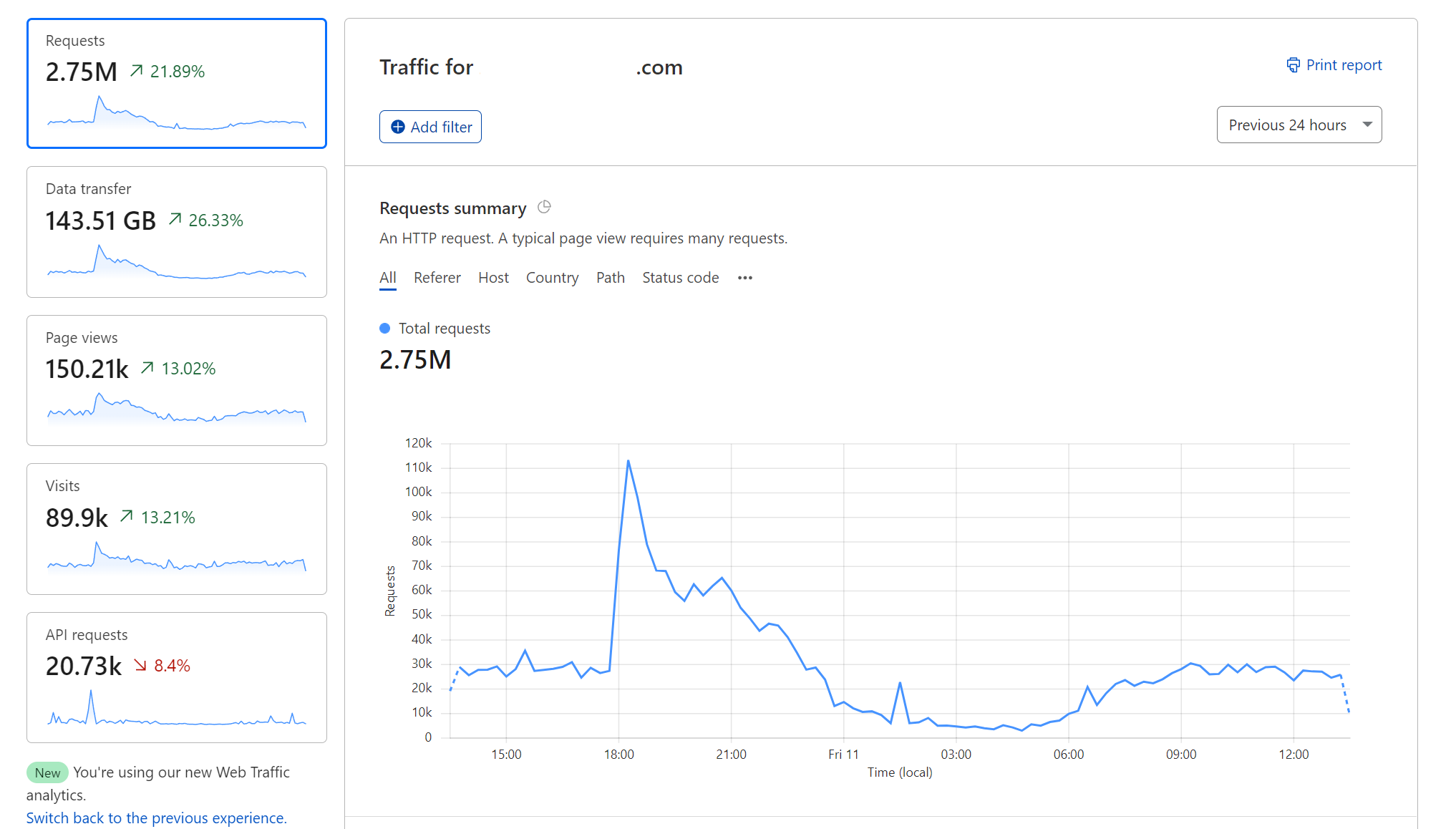 Then we had a proper DDOS attack and it was a real ballache to defend against, so I stuck Cloudflare between the dirty internet and our nice Magento web server, and their Web Application Firewall (WAF) was instantly awesome. Stupid traffic disappeared, and all these tools I had scraped together with scripts, .htaccess files, Apache rewrites, etc were replaced by one dashboard.