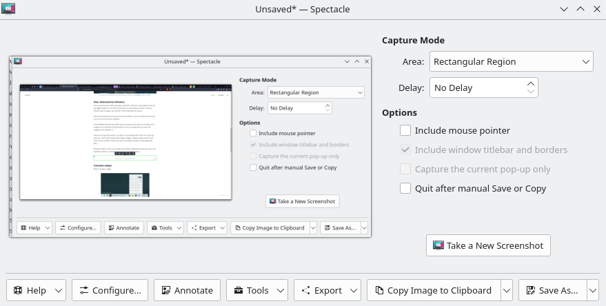 KDE apps really are very good. The screenshot app Spectacle just works, and has loads of nice features including simple annotation.