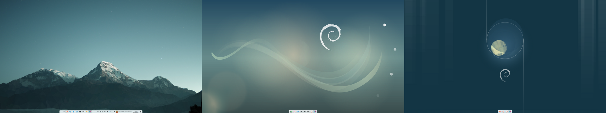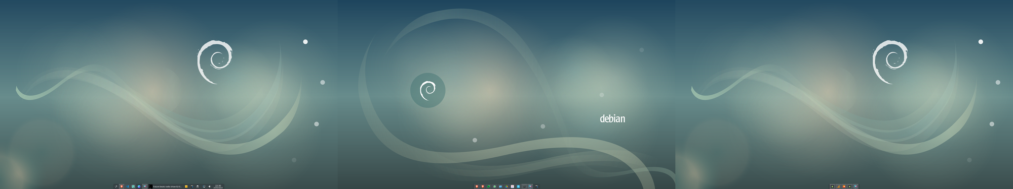 My triple screen desktop nearly 20 years later in 2023, Debian running KDE Plasma on Wayland.