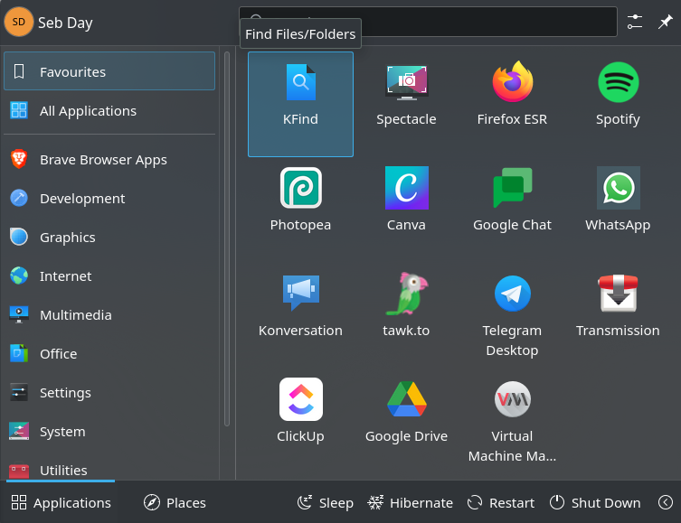 - Brave, Dolphin, Whatsapp, Clickup, Insync, Konsole, Konversation, Spotify & Telegram