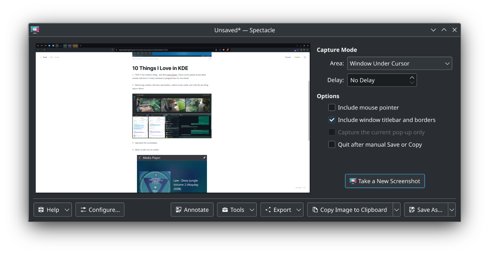 Big shoutout to Spectacle for screenshots, it has everything you need without silly features.