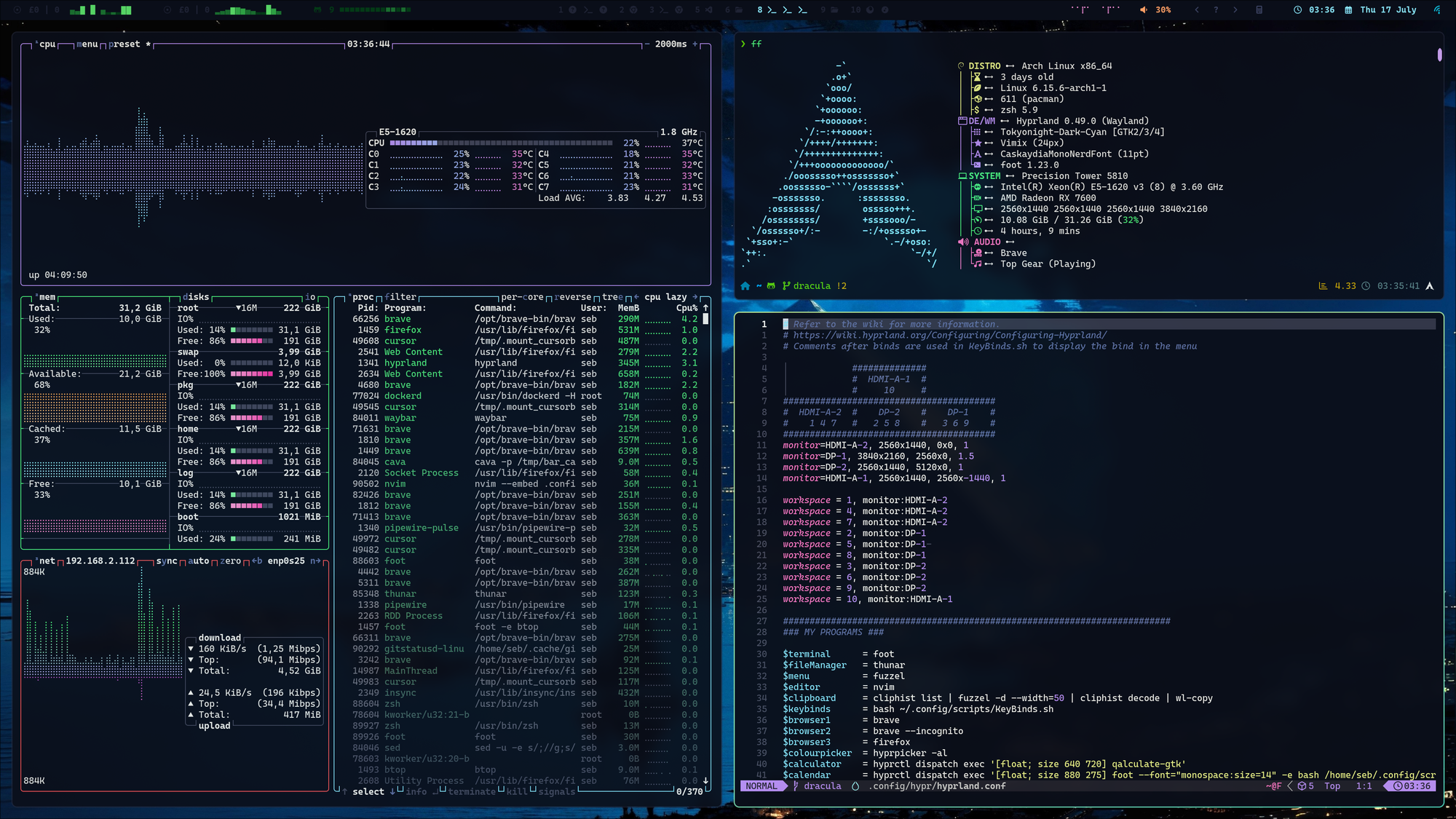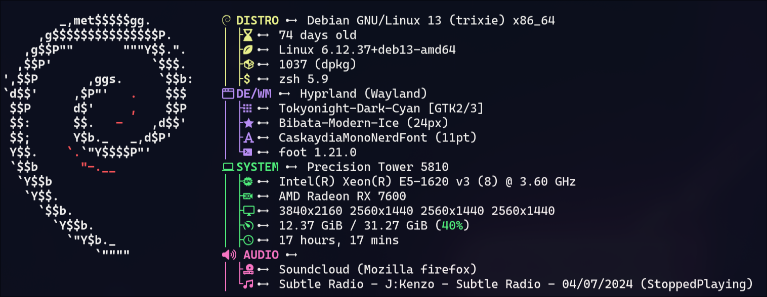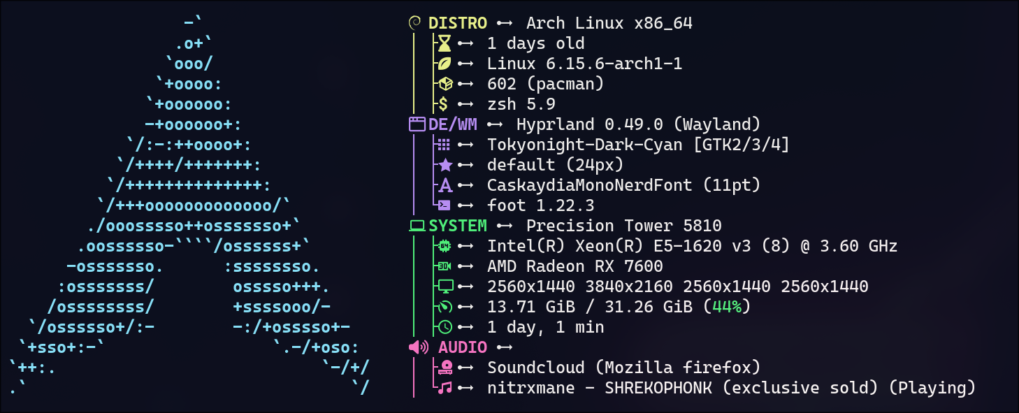I finally decided to try out Arch as I was bored of waiting for the Hyprlock and Hypridle packages to come into Debian Sid, and Hyprland has also been stuck on 0.42 vs 0.49 on Arch.