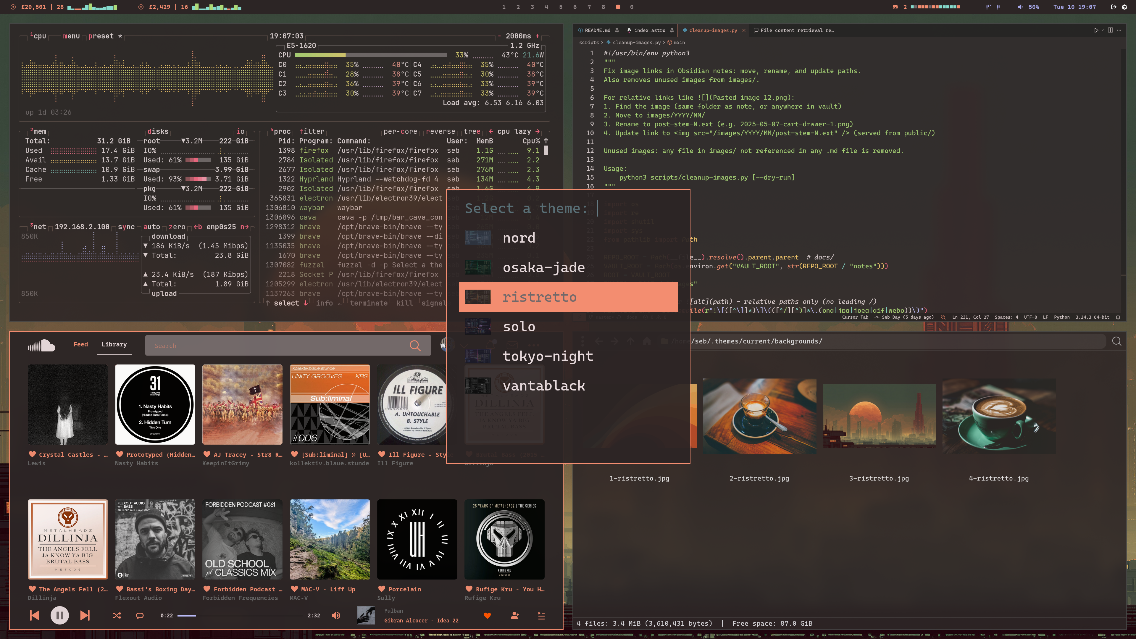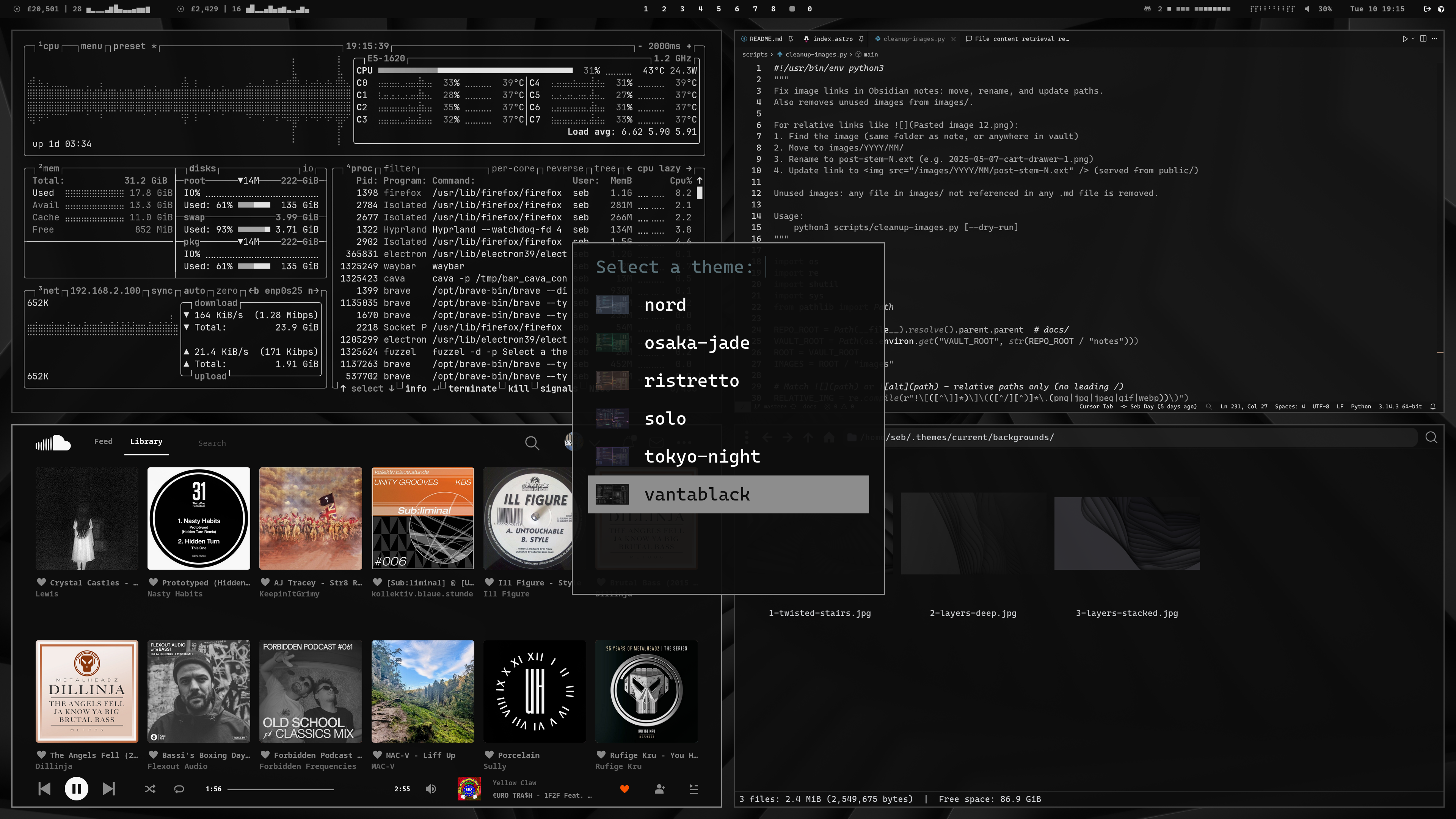 I’ve now spent over a year on Linux (my longest run in a while) and because I no longer need Adobe I will never switch back. I spent a few months on KDE then found the tiling based window manager Hyprland. I fell in love (it kinda reminded me of Blackbox) and at the same time started using AI a lot for work. This opened up a whole world of bash scripting and really customising my desktop
