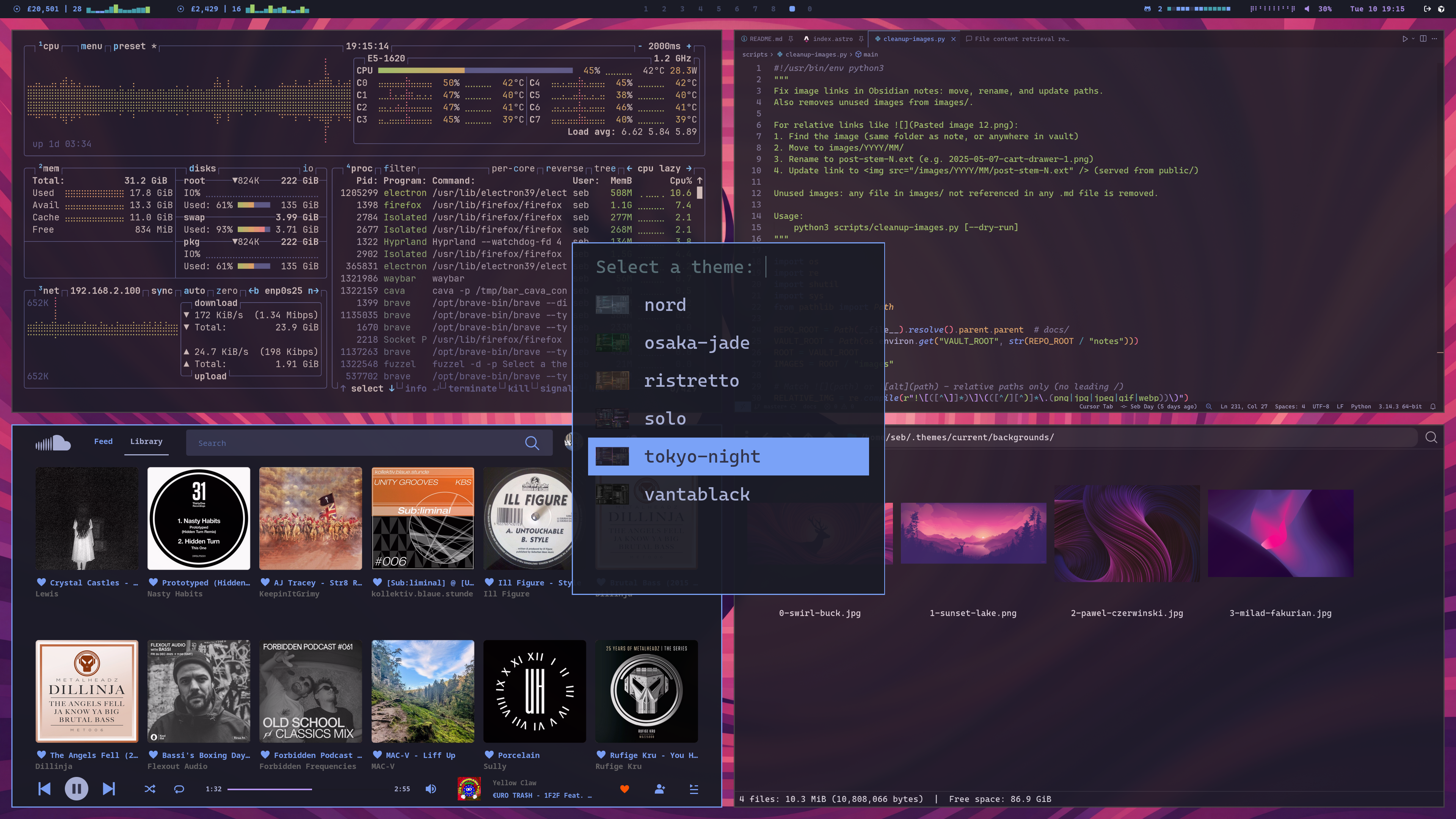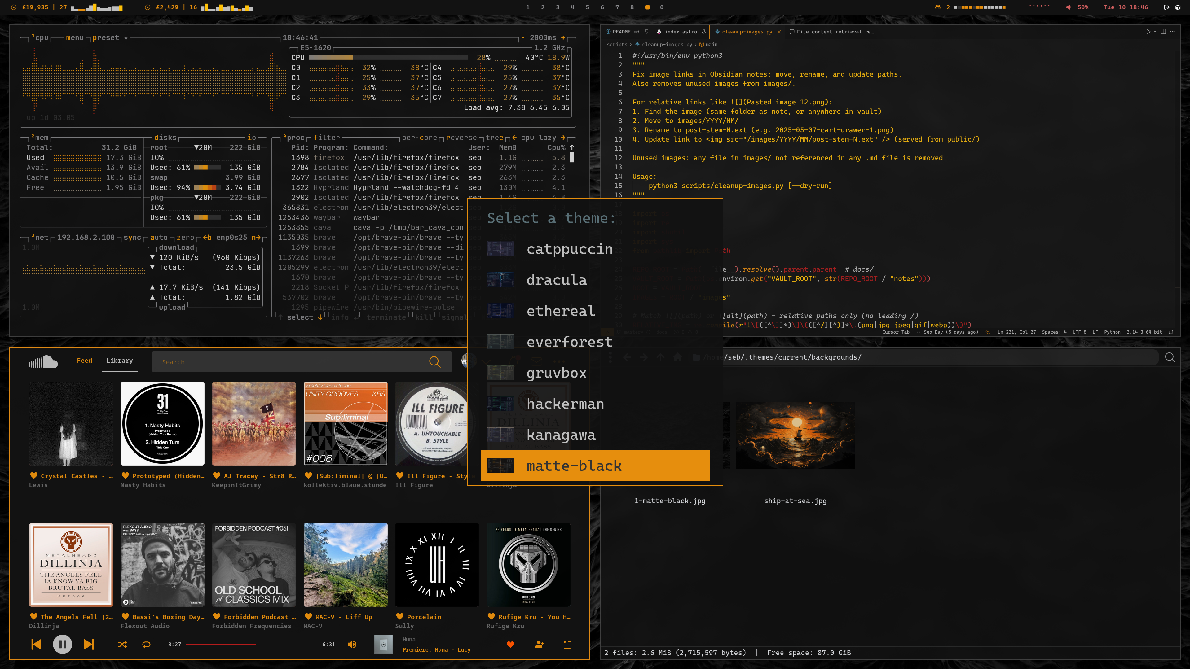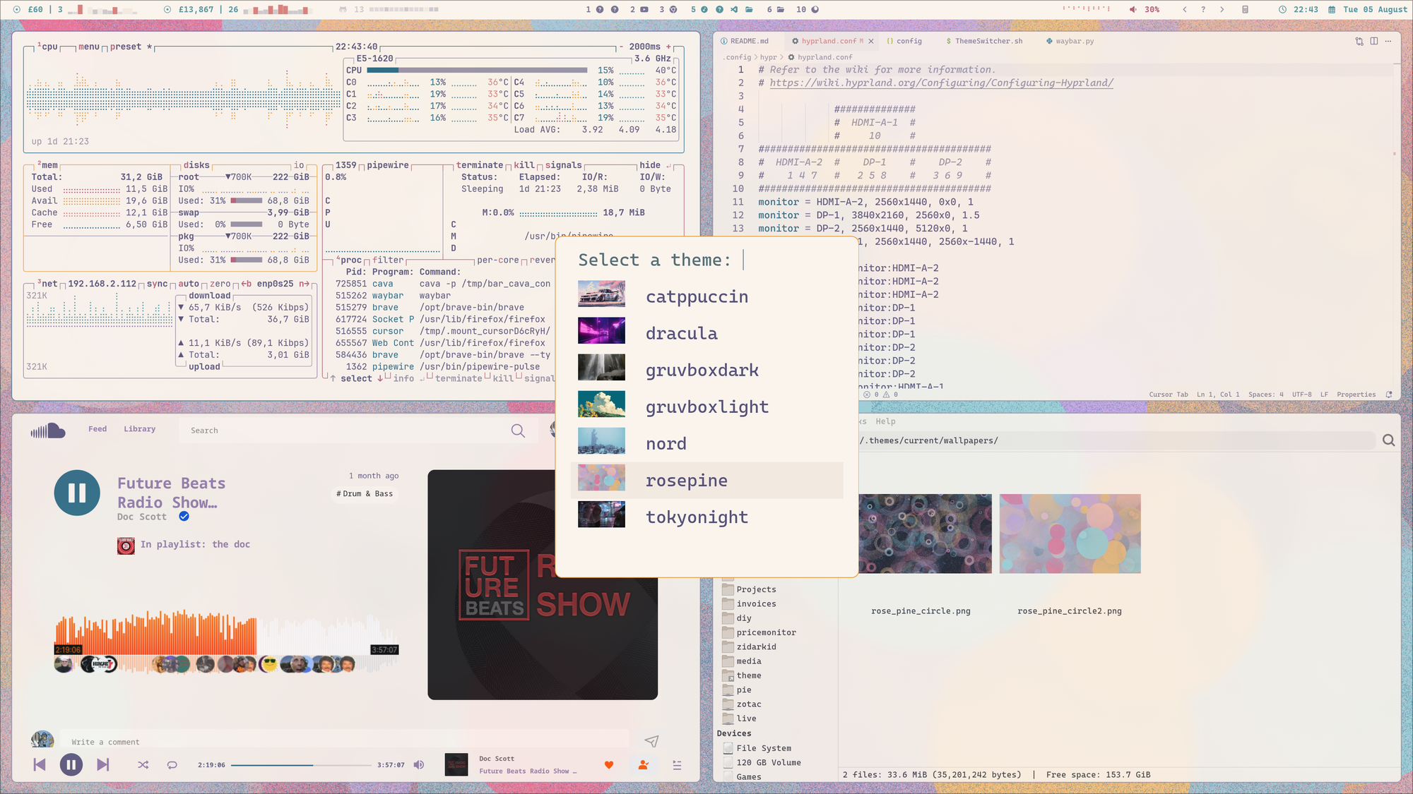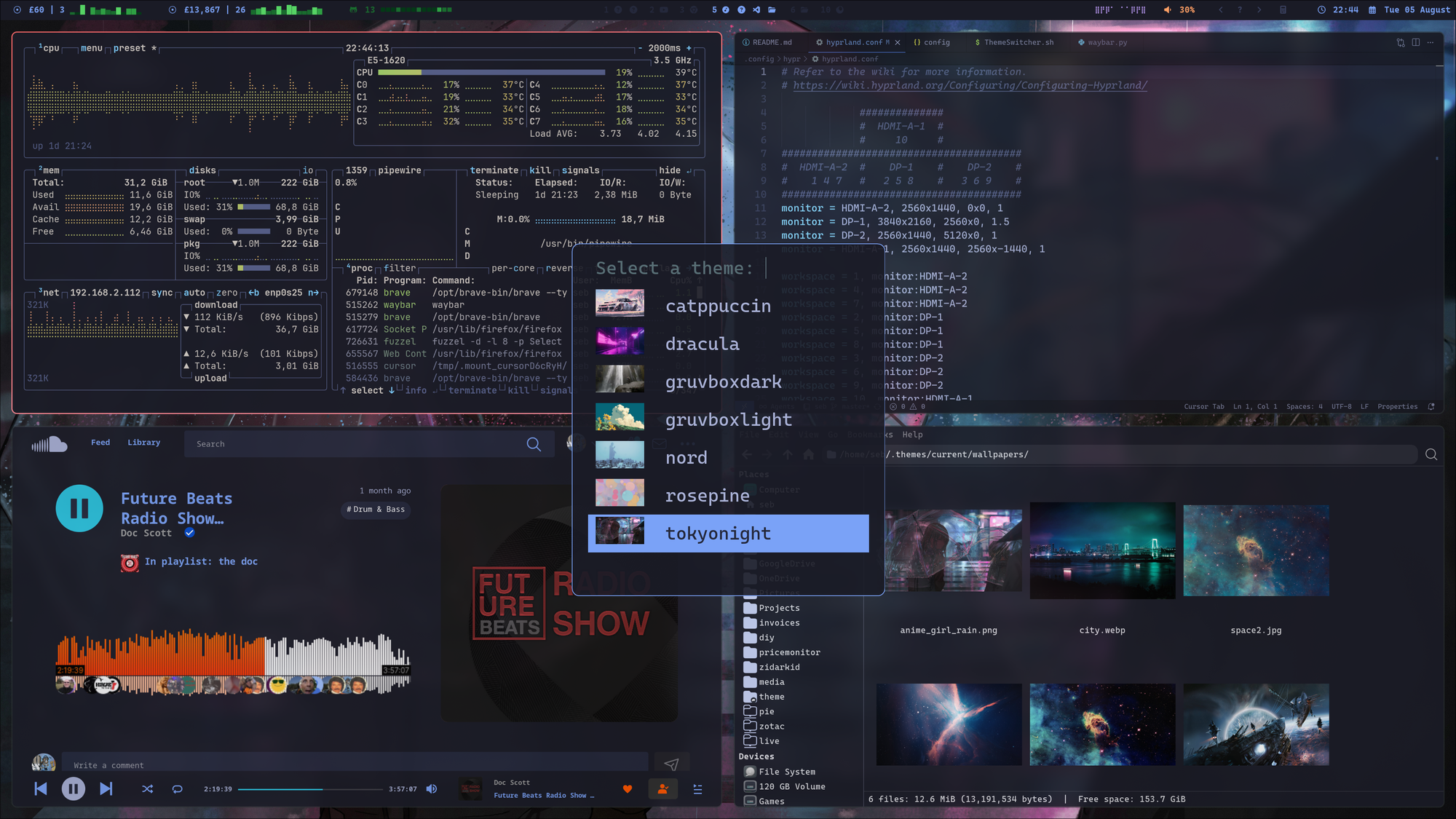 Massive thanks to Vaxry for creating Hyprland and reigniting my long-time love for tinkering with my desktop.