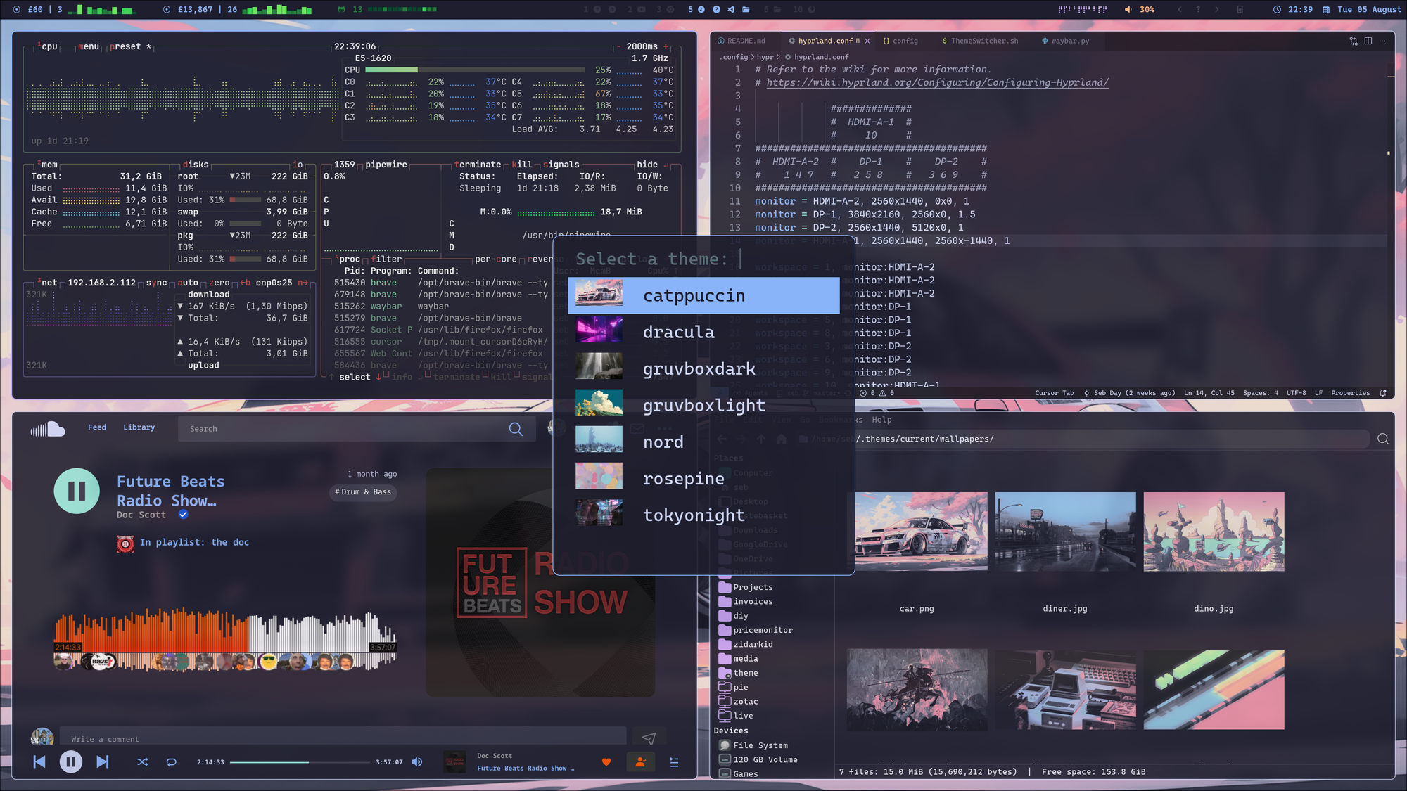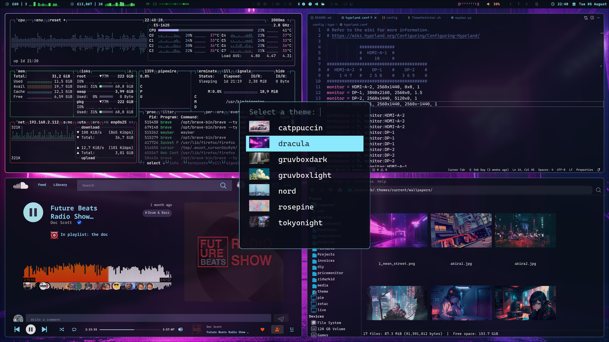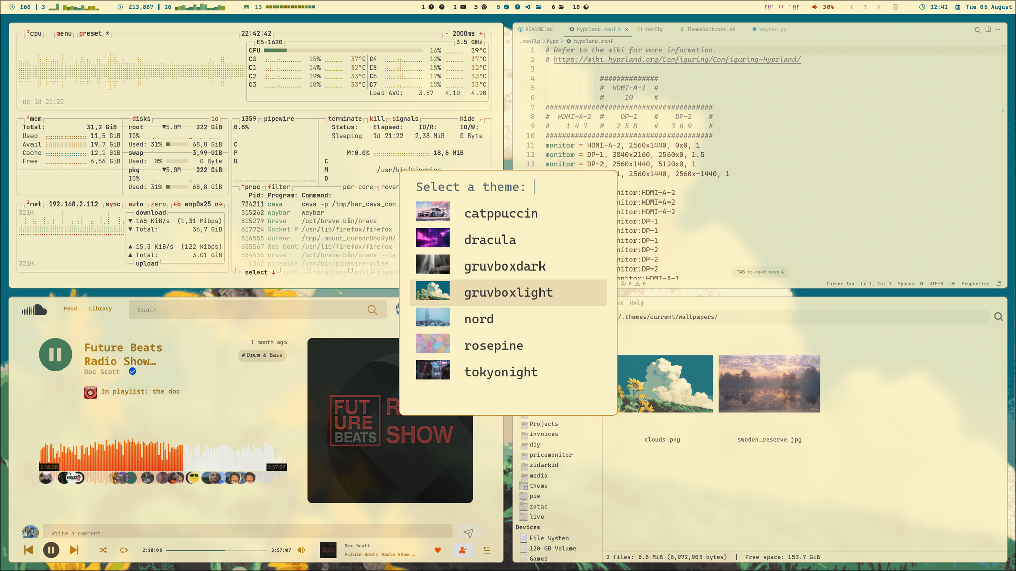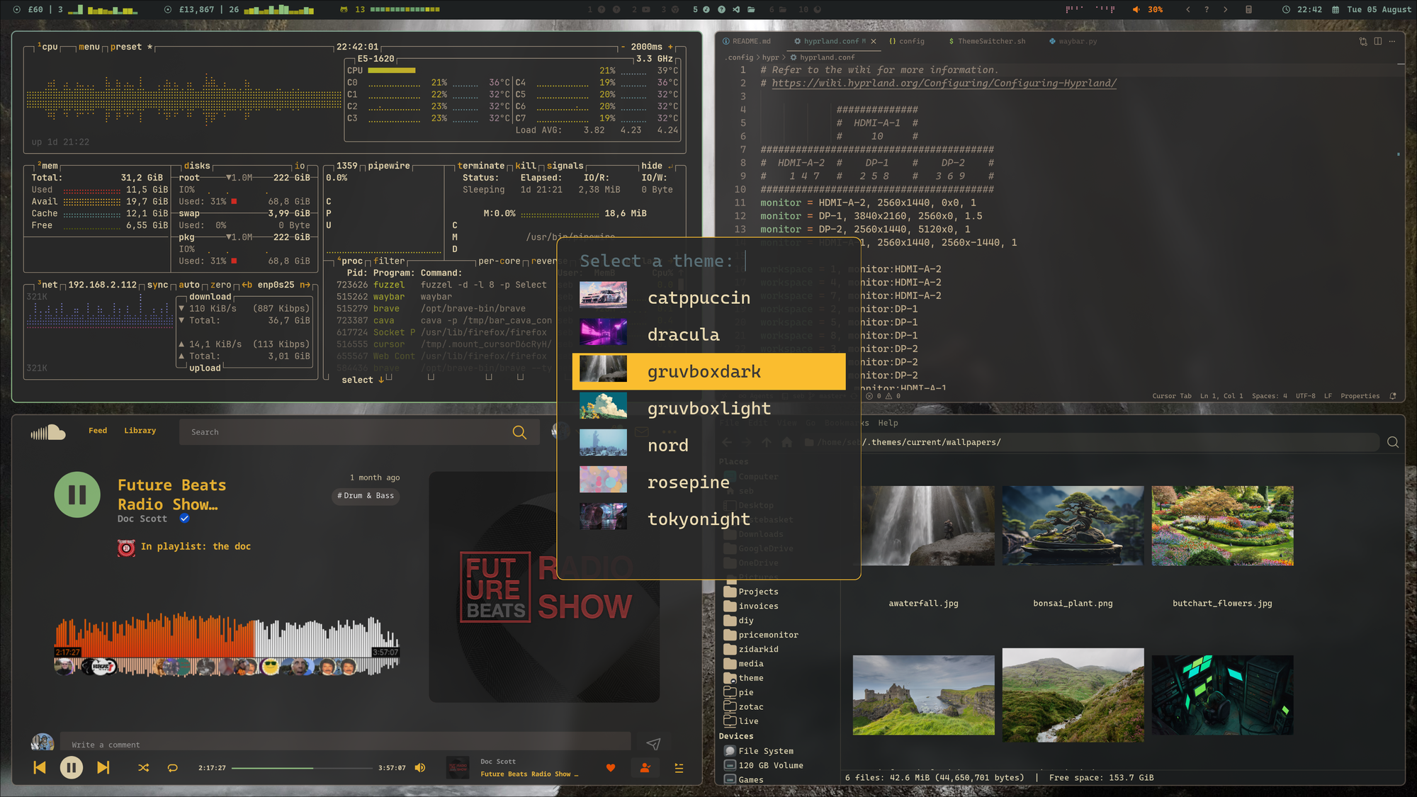 Massive thanks to Vaxry for creating Hyprland and reigniting my long-time love for tinkering with my desktop.